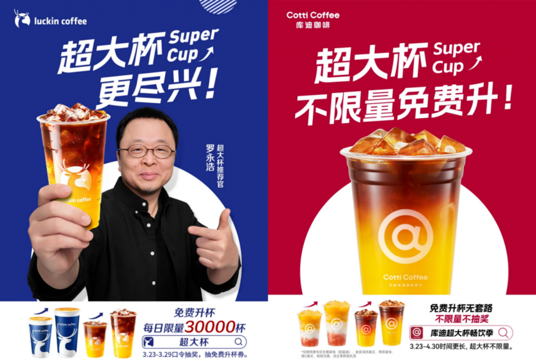 虽然同时推出了超大杯的活动,但是瑞幸和库迪在打法上的区别很明显。