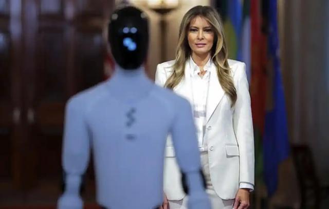 可梅拉尼娅不在乎这些。她站在白宫的大厅里,身边那个讨喜的机器人安安静静地陪着,她说得眉飞色舞,仿佛已经看到了一个没有真人教师、全是机器人上课的未来。