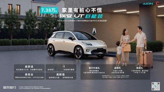 近日银河策略,埃安官宣:7月1日至8月31日,购埃安UT即享限时免费赠送价值4999元充电桩套餐(含安装服务)。